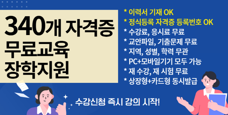 100만 회원이 선택한 믿을수 있는 교육원, 대한민국 교육브랜드 대상 수상 200과목 장학지원 이벤트!
